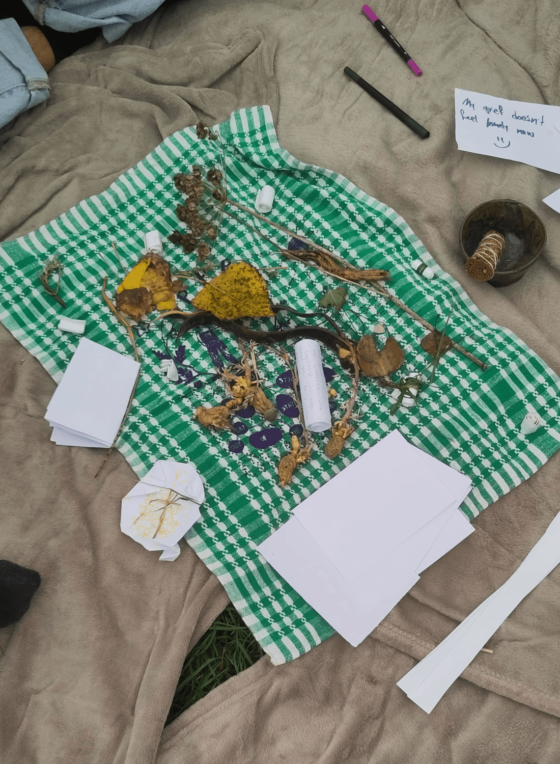 Grief Space was a moment to lay our bodies on damp earth, to close eyes and explore the slowness of serpents and reptiles: to slither, to sense deeper, to exhale, and to seek out hibernation and recovery.